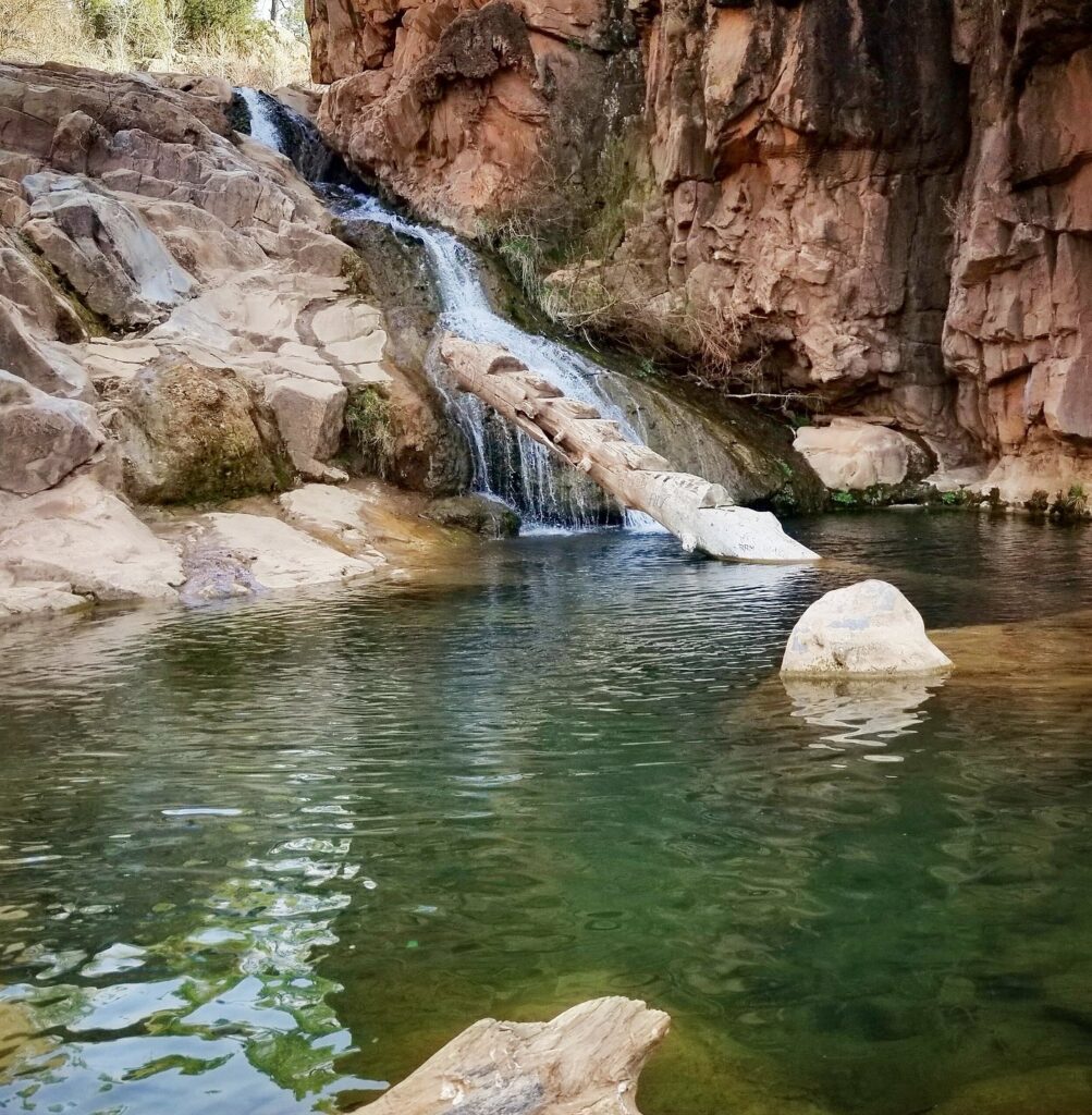 The trail winds alongside the East Verde River, requiring a bit of adventurous “rock hopping” and river crossing to reach the main event: a stunning waterfall that spills into a wide, emerald pool. Along the way, you’ll find smaller cascades and unique geological formations carved by centuries of flowing water.